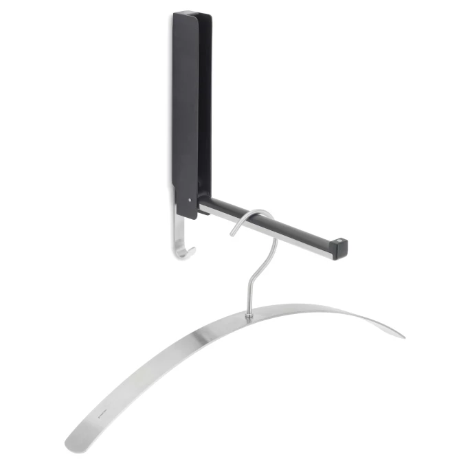 Ein besonders praktischer Alltagshelfer ist der Klapphaken Lanca von blomus. In das schwarze Kunststoffgehäuse, das an der Wand befestigt wird, wird der Kleiderhaken aus mattem Edelstahl eingeklappt. Wenn benötigt, wird dieser einfach ausgeklappt und fertig ist der Garderobenaufhänger. Für die Zeit, in der der Haken nicht benötigt wird, lässt er sich einfach wieder einklappen und ist dann nur ein dezentes Objekt an der Wand. Sie werden sich auf Anhieb in das kleine Verwandlungswunder verlieben und es aus Ihrem Zuhause nicht mehr wegdenken können!