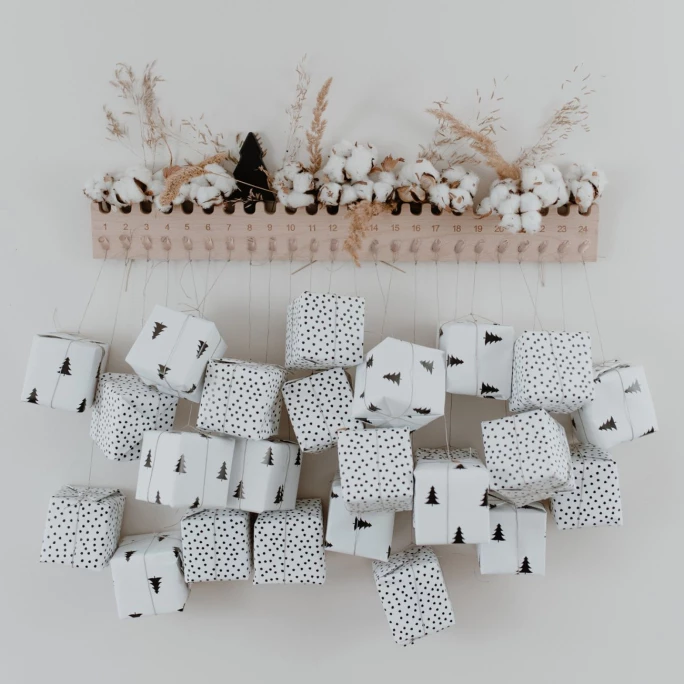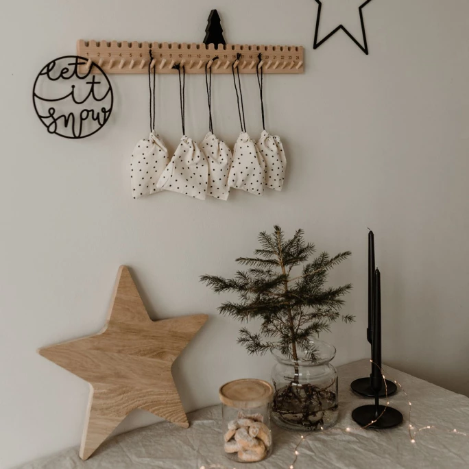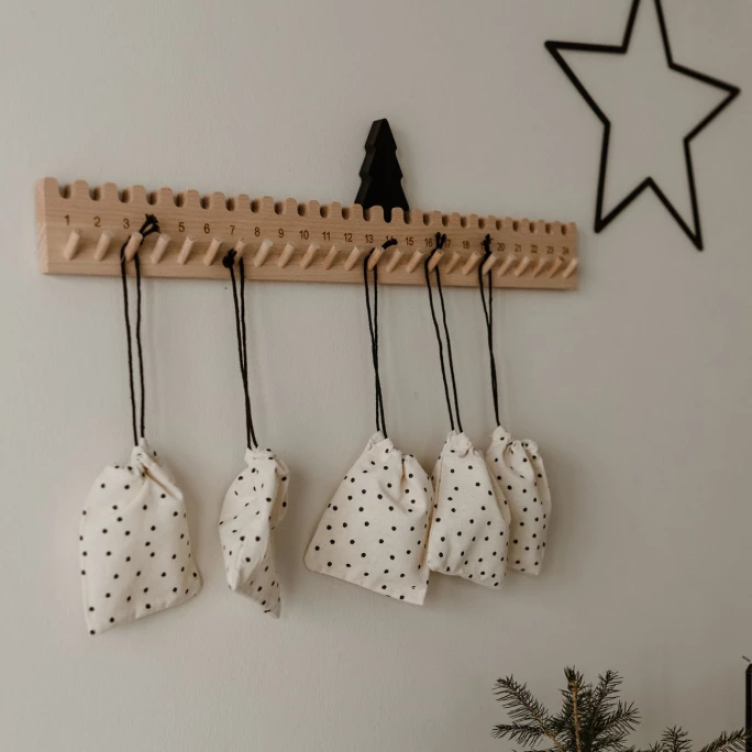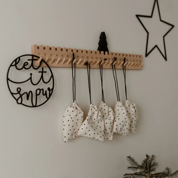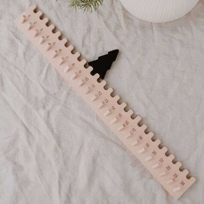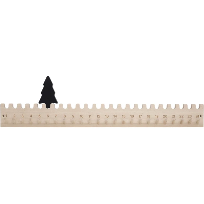 Die geschmackvolle Adventskalender-Holzleiste Tanne von Eulenschnitt überzeugt durch Funktionalität und Design. Der interaktive Kalender aus Buchenholz ist mit den 24 Dezembertagen verziert. Zu jeder Zahl gehört dabei immer ein Haken, an dem Sie kleine Geschenke aufhängen können. Das absolute Highlight ist aber der kleine dekorative Tannenbaum, den man an jedem Tag weiter wandern lassen kann. So wird die Wartezeit bis zu Weihnachten verkürzt. Für eine ganz besonders besinnliche Atmosphäre sorgen Sie, wenn zwischen der Leiste und der Wand noch eine Lichterkette oder ein weihnachtlicher Ast dekorativ in Szene gesetzt wird. Hierfür sollte die Holzleiste nicht zu eng an der Wand befestigt werden. Durch die zwei vorgebohrten Löcher, kann sie ganz einfach mit Schrauben und Dübeln befestigt werden. Diese sind nicht im Lieferumfang mit enthalten. Wir bieten Ihnen weitere Artikel aus dem Hause Eulenschnitt in unserem AMBIENDO Shop an. Machen Sie sich oder Ihrem Nachwuchs mit der zauberhaften Adventskalender-Holzleiste Tanne von Eulenschnitt eine Freude!