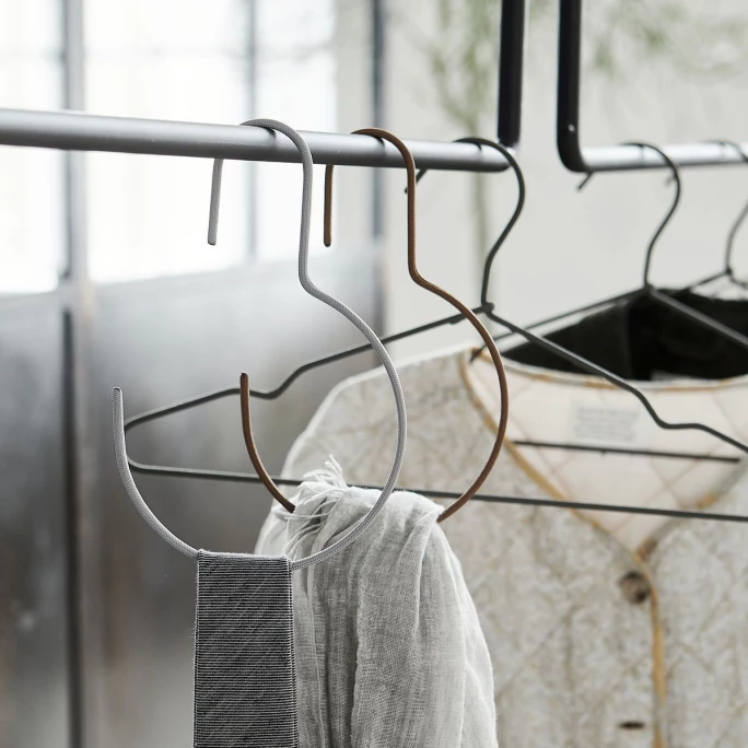 Diese Kleiderhaken sind Lebensretter im Alltag, wenn der Platz mal wieder knapp wird. Sie wurden aus einem einzigen Stück Eisen gefertigt und mit einem langlebigen Nylonstoff überzogen. Sie können das 3er-Set Wire für Schals und Strumpfhosen verwenden oder aber können Sie Taschen verstauen, die übersichtlich ihren Platz am Haken finden können. Kombinieren Sie die runden Wire Bügel mit den normalen Kleiderbügeln mit Stoffbezug aus der Wire-Kollektion von House Doctor, um einen praktisch ausgestatteten und minimalistischen Kleiderschrank zu kreieren. Bestellen Sie jetzt!