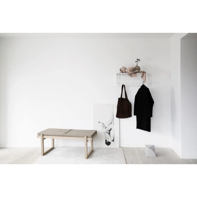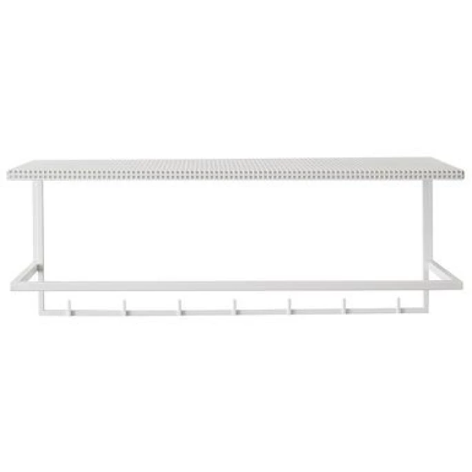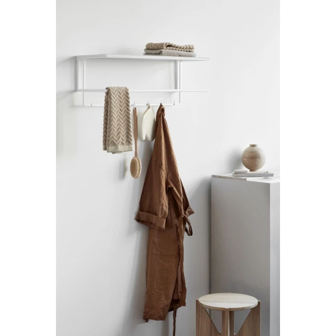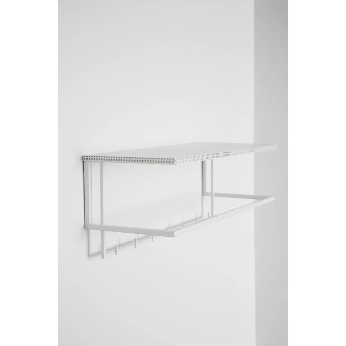 Mit der Grid Wandgarderobe von Kristina Dam Studio schaffen Sie im Handumdrehen Ordnung! Die 75 cm lange und 28 cm breite Kleideraufbewahrung ist aus pulverbeschichtetem Stahl gefertigt und begeistert durch ein minimalistisches Industrie-Design. Grid verfügt über sieben Haken, an denen Sie Ihre Jacken, Mäntel, Blusen, Kleider, Hemden, Taschen, Schals, Handtücher oder Bademäntel aufhängen können. Zusätzlich verfügt die stylische Wandgarderobe über eine perforierte Stahlplatte, auf der sich Handtücher, Hüte und Mützen aufbewahren lassen. Das Gestell von Grid ist so tief, dass Sie Ihre Kleidung auch auf handelsüblichen Kleiderbügeln an den Stahlrahmen hängen können – einfach perfekt! Durch den schlichten Look und die neutrale Farbgebung passt die Kristina Dam Studio Wandgarderobe zu wirklich jeder zeitgemäßen Wohnraumeinrichtung und sieht im Flur genauso gut aus wie im Arbeits-, Schlaf- oder Badezimmer. Die maximale Tragkraft von Grid beträgt 8 kg. Dies ist jedoch abhängig von der Wandbeschaffenheit und dem verwendeten Befestigungsmaterial. Achten Sie daher bei der Montage darauf, die passenden Dübel und Schrauben für Ihre Wände zu verwenden. Zur Reinigung benutzen Sie bitte nur warmes Seifenwasser, das Sie anschließend mit einem weichen Tuch wieder abtrocknen. Chemikalien können die Oberfläche des Stahls beschädigen. Lassen Sie sich von dem einfachen und doch so praktischen Design der Grid Wandgarderobe von Kristina Dam Studio begeistern und sorgen für Übersichtlichkeit und Ordnung in Ihren Räumlichkeiten!