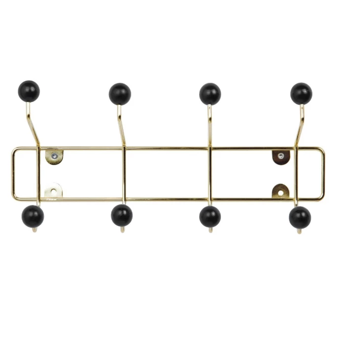 Present Time Saturnus Garderobenleiste – 34×15 Cm – Tiefe 14 Cm – Golden Mit Schwarzen Kugelhaken