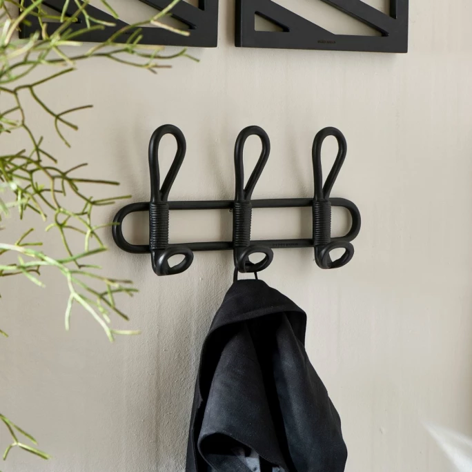 Die David Wandgarderobe von Rivièra Maison ist eine stabile Wandaufbewahrung aus robustem Aluminium mit dunkler Beschichtung. David hat sechs Haken, bietet ausreichend Platz für Mäntel, Taschen und andere Accessoires und punktet durch einen schicken Industrie-Look. Das besondere Highlight: Die Haken an der Rivièra Maison Garderobe sehen aus als ob sie geknotet sind. Lassen Sie sich von dem tollen Design begeistern und holen sich mit der David Wandgarderobe von Rivièra Maison ein besonders stylisches und praktisches Wohnaccessoire in Ihr Zuhause.
