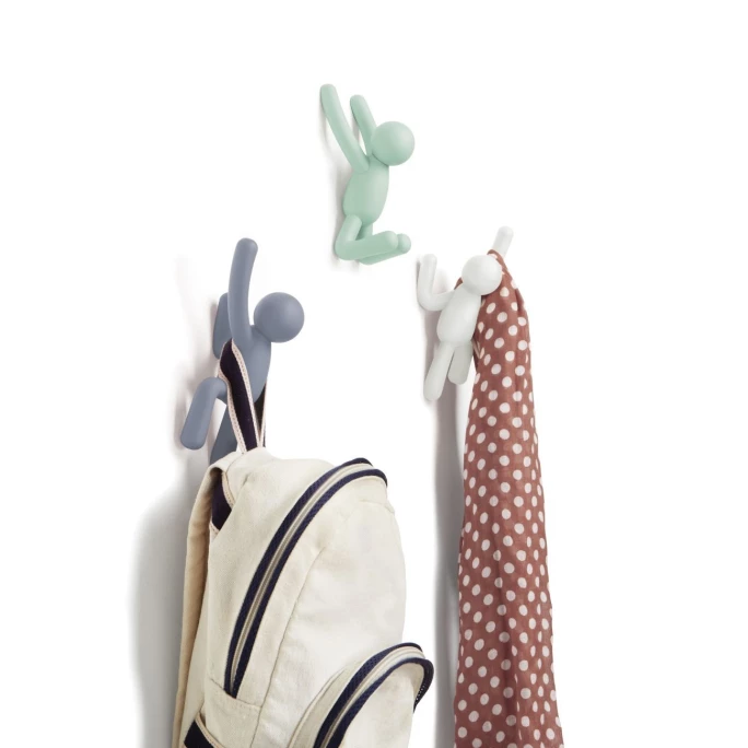 Die kleinen Helferlein der Buddy Kollektion von Umbra unterstützen Sie in den unterschiedlichsten Situationen. Mit den Wandhaken holen Sie sich nicht nur einen Hingucker an Ihre Wand! Das Set aus drei Kletterern lässt sich mittels mitgelieferter Schrauben unsichtbar an der Wand befestigen. Hängen Sie Kleidungsstücke, Accessoires oder Dekoration an die Hände, Füße und Köpfe der Buddys. Die Herstellung aus Kunststoff macht sie besonders robust. Bestellen Sie die Wandhaken Buddy aus dem Hause Umbra in einer von vielen Farben und lassen Sie sich von Qualität und Design begeistern!