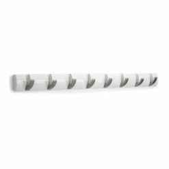 Bewahren Sie Jacken, Schals und andere Accessoires sicher auf mit der Garderobenleiste Flip aus dem Hause Umbra! Das abgerundete Design ist in vielen Varianten verfügbar und lässt sich wunderbar kombinieren. Die Metallhaken liegen in der Leiste und lassen sich bei Bedarf ausklappen. Hängt nichts daran, können diese wieder schnörkellos eingeklappt werden. Mit dem mitgelieferten Montagezubehör kann die Leiste beinah unsichtbar an der Wand befestigt werden. Bestellen Sie die praktische Garderobenleiste Flip von Umbra und lassen Sie sich von Qualität und Design begeistern!