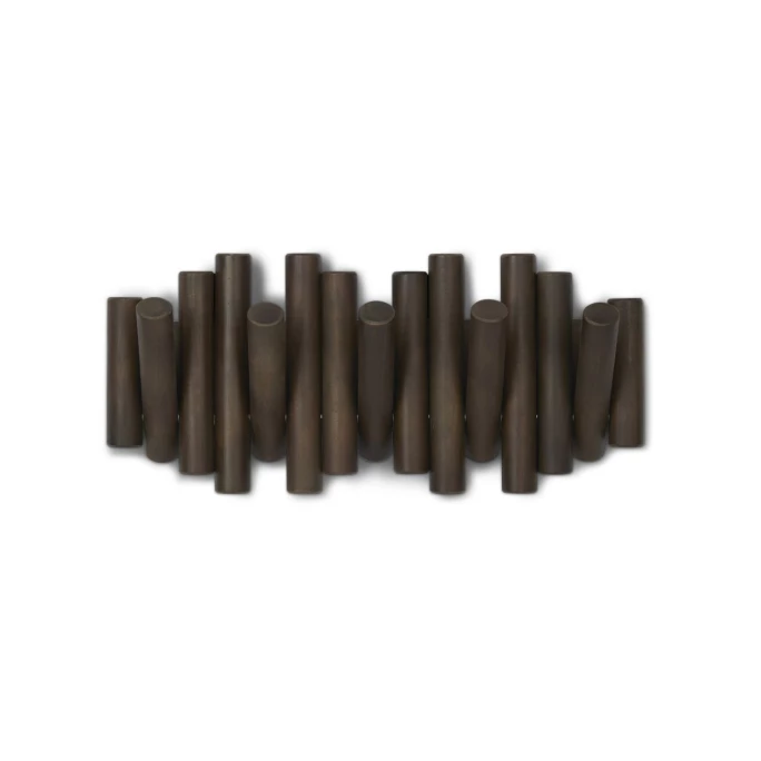 Garderobe und Dekorationsobjekt zugleich! Die Garderobenleiste Picket aus dem Hause Umbra besteht aus vielen Holzleisten, welche in verschiedenen Höhen eng aneinander geklebt wurden. Dadurch entsteht ein moderner Look, der auch als Wanddekoration verstanden werden kann. Einige der Holzleisten lassen sich herunterklappen, so dass Sie daran Jacken, Mäntel und Accessoires aufhängen können. Material zur Montage der Garderobe an der Wand ist bereits in der Lieferung enthalten. Bestellen Sie die moderne Garderobenleiste Picket von Umbra und lassen Sie sich von Qualität und Design begeistern!