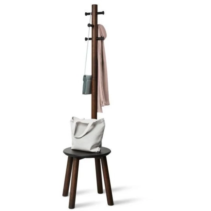 Platzsparende und multifunktionale Möbelstücke zu finden ist nicht einfach. Der Pillar Garderobenständer mit integriertem Hocker ist vielseitig und praktisch und sollte in keinem Haushalt fehlen. Dieser freistehende Garderobenständer mit integriertem Sitz verfügt über 6 stabile Haken für eine Vielzahl von Gegenständen während der integrierte Hocker eine praktische Ablage für Taschen, Pflanzen, und Hüte ist. Natürlich kann der Hocker auch als Sitzfläche genutzt werden, um Schuhe anzuziehen. Pillar ist aufgrund seiner kompakten Abmessungen (165 x 50 x 50 cm) besonders für Wohnen auf kleinem Raum geeignet. Trotz seines kompakten Designs bietet er viel Staufläche und ziert jeden Flur, jedes Schlafzimmer oder jedes Bad. Sie suchen nach einem multifunktionalen Möbelstück, das nicht nur stylisch aussieht sondern auch maximale Staufläche bietet? Dann bestellen Sie den Pillar Garderobenständer mit integriertem Hocker von Umbra noch heute!