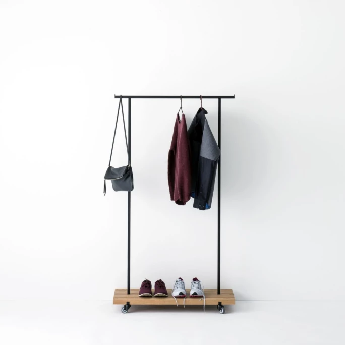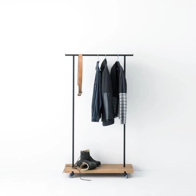 Wer ein flexibles Aufbewahrungsmöbel sucht, trifft mit der Kleiderstange EICHE 01 von weld & co eine gute Wahl. Sie bietet Hänge- und Stellmöglichkeiten für alles, was in Ankleide-, Schlafzimmer oder Flurbereich verstaut werden soll. Durch ihre weichen Rollen ist der Kleiderständer EICHE 01 von weld & co schnell in unterschiedlichen Bereichen und auf allen Böden einsetzbar. Die Rollgarderobe EICHE 01 ist in drei Größen erhältlich. Die Ablage ist aus massiven Eiche-Bohlen gefertigt, das Gestänge aus stabilem pulverbeschichtetem Metall. Kaum ein anderes Holz steht für so viele positive Eigenschaften wie Eiche: Ein schöner goldener Farbton, edle charakteristische Maserung, robust in der Verarbeitung und langlebig in der Nutzung. Diese Charakteristiken finden sich in den Möbeln und Wohnaccessoires der Eiche-Kollektion von weld & co wieder. weld & co steht für Möbel und Wohnaccessoires aus der traditionsreichen Möbelregion Ostwestfalen. Das Design ist klar und auf das Wesentliche fokussiert und die gewählten Materialien unterstützen Gestaltung und Nutzen gleichermaßen. In der Produktion verbindet weld & co handwerkliche Manufakturherstellung mit industrieller Fertigung in der Region und setzt auf Ressourcen in der Region. Die Vorteile sind z.B: : kurze Abstimmungswege und direkter Austausch mit Produktionspartnern. weld & co bevorzugt Materialien wie Stahl, Eiche und Altholz – gerne gemeinsam verwendet in kontrastreichen Kombinationen. Beständigkeit und Langlebigkeit zeichnen die Kleiderstange EICHE 01 aus massiver, geölter Eiche aus! Schaffen Sie stilvoll Ordnung mit der soliden Reihengarderobe von weld & co.