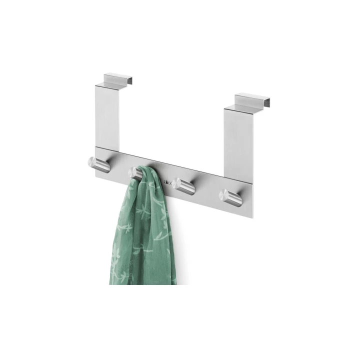 Stilvoll setzt ZACK alltäglich genutzte Dinge dekorativ in Szene. Mit der hochwertigen Türhakenleiste EXIT von ZACK mit 4 praktischen Haken bewahren Sie Jacken, Accessoires oder kleine Taschen ordentlich auf. Durch die schräg angebrachten Haken wird ein Herunterrutschen der Kleidungsstücke und Taschen verhindert. Puristisch und formschön aus elegantem, mattem Edelstahl wird die schlichte Hakenleiste zum Schmuckstück an jeder Tür! Die Türhakenleiste lässt sich ganz einfach innen an Falztüren hängen und ist so konzipiert, dass die Tür trotzdem wie gewohnt schließt! Auf der Innenseite ist die Leiste mit einem weichem EVA Kunststoff-Pad, welches ein Verkratzen der Türoberflächen verhindert, ausgestattet. Der Name ZACK steht seit über 30 Jahren für stilvolle Wohnaccessoires aus Edelstahl. Das hauseigene Design-Atelier entwirft markante Kollektionen für stilbewusste Menschen, die Wert auf hervorragende Verarbeitung, hochwertige Materialien und ein puristisches Design legen. Schaffen Sie stilvoll Ordnung mit der modernen Türhakenleiste EXIT von ZACK mit 4 Haken. Kleiner Helfer mit großer Wirkung!