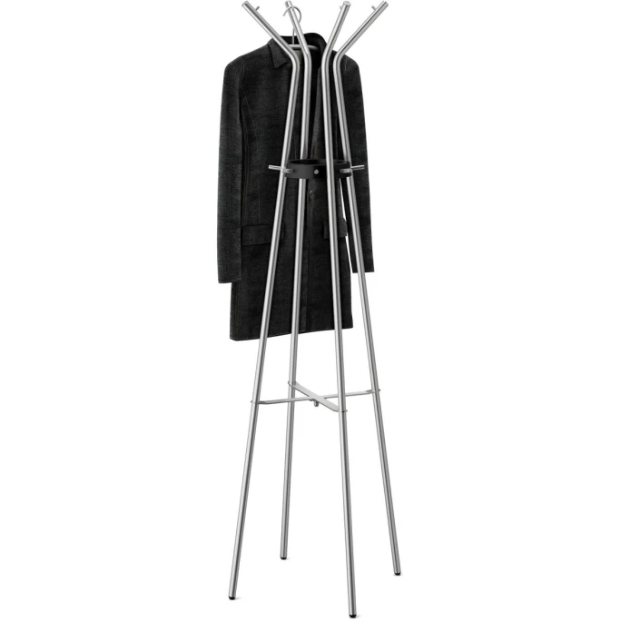 Schluss mit dem Jacken-Chaos! Auf der Standgarderobe TEROS aus dem Hause ZACK bekommt jede Jacke und jeder Mantel seinen Platz. Die Garderobe steht auf vier Beinen, welche sich als lange Stangen bis auf 1,75 Meter bewegen. Die raffinierte Form und die Querstreben bieten genügend Möglichkeiten, um Kleidungsstücke aufzuhängen. Durch den freien Stand ist die Garderobe super flexibel und kann immer wieder bewegt werden. Die Herstellung aus Edelstahl sorgt für den filigranen Look des Möbelstücks. Der Name ZACK steht seit über 30 Jahren für stilvolle Wohnaccessoires aus Edelstahl. Das hauseigene Design-Atelier entwirft markante Kollektionen für stilbewusste Menschen, die Wert auf hervorragende Verarbeitung, hochwertige Materialien und ein puristisches Design legen. Gehören auch Sie dazu und bestellen Sie die elegante Garderobe TEROS!